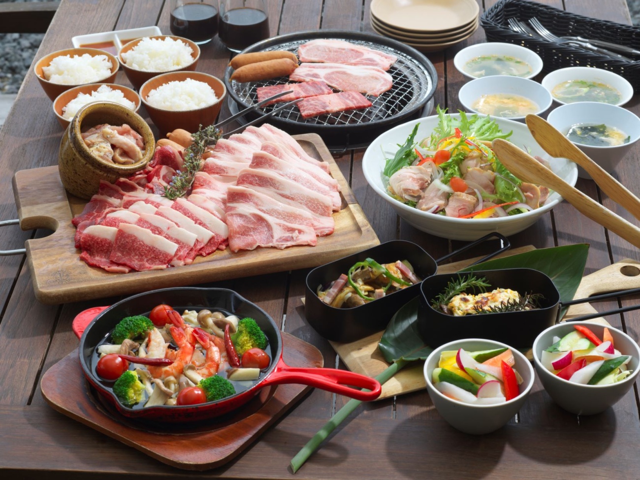 海の真ん前。みんなで囲むジュージュー熱々BBQ。テントの下で雨が降っても安心。